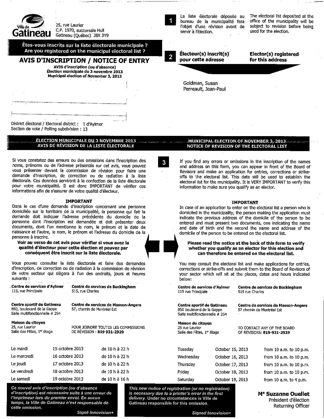 Comment le gouvernement du Québec peut-il, d’un côté, stipuler à l’article 1 de la Charte de la langue française que « le français est « la » langue officielle du Québec » et de l’autre, tolérer que son Directeur général des élections affiche publiquement le contraire dans toutes ses communications « officielles ». Pour ce dernier, il y a non pas une, mais deux langues officielles au Québec, deux langues d’usage public comme en témoigne le document ci-joint. Il promeut ainsi l’isolement citoyen et crée un déficit démocratique en encourageant le non-apprentissage du français, langue que pourtant tout le monde est censé connaître au Québec!